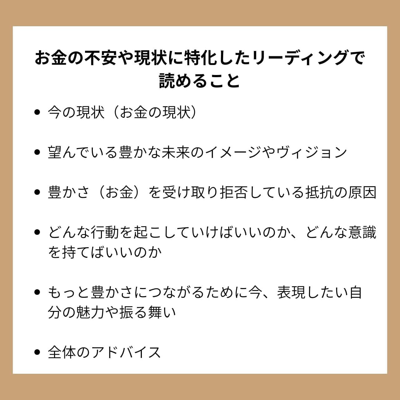 お金の不安や現状に特化したリーディング