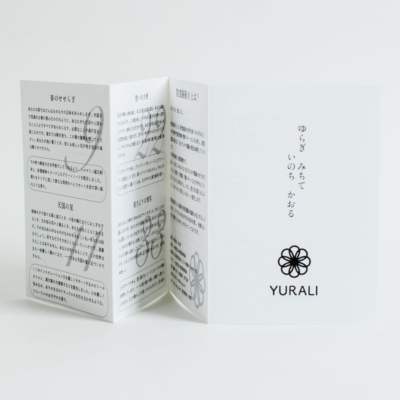数字別の数秘詩を掲載した解説書付き。香りとともにそこに込められた意図を感じてください。